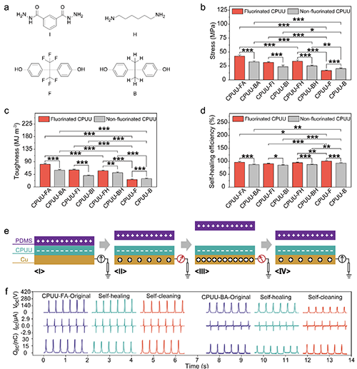 【圖2:仿生含氟彈性體CPUU-FA及其對照材料CPUU-BA的結(jié)構(gòu)和性能】