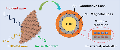 圖6 PVB-Cu/Ni@AF織物電磁屏蔽機理示意圖