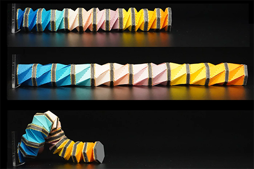 Wu, S., Ze, Q., Dai, J., Udipi, N., Paulino, G. H., & Zhao, R. (2021). Stretchable origami robotic arm with omnidirectional bending and twisting. Proceedings of the National Academy of Sciences, 118(36). Nature Research Highlight, PNAS In This Issue.