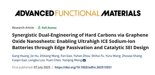 基于此,四川大學王延青特聘研究員課題組,在國際知名期刊Advanced Functional Materials上發表題為“Synergistic Dual-Engineering of Hard Carbons via Graphene Oxide Nanosheets: Enabling Ultrahigh ICE Sodium-Ion Batteries through Edge Passivation and Catalytic SEI Design”的研究論文。四川大學高分子科學與工程學院博士研究生黃港為文章第一作者,華南理工大學生物醫學科學與工程學院博士研究生胡杰為文章共同第一作者,四川大學王延青特聘研究員為文章通訊作者。
