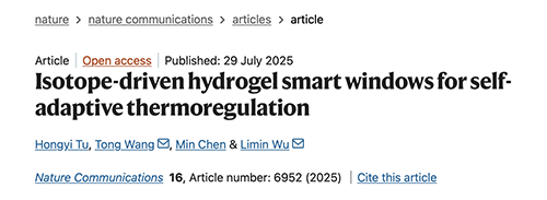 原文鏈接:Hongyi Tu, Tong Wang, Min Chen & Limin Wu, Isotope-driven hydrogel smart windows for self-adaptive thermoregulation. Nature Communications, 2025.