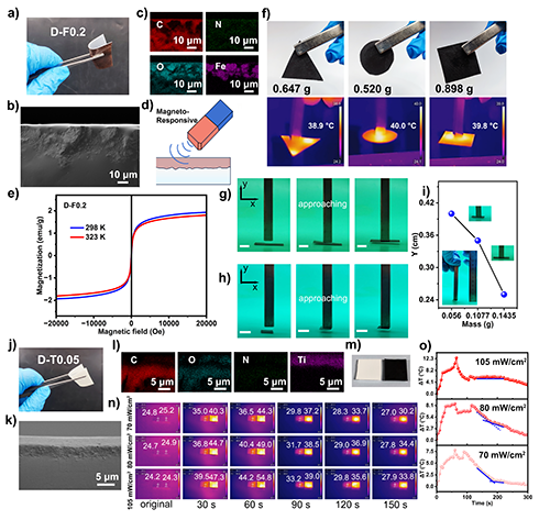圖3 D-x膜的光熱轉(zhuǎn)換性能及熱電應(yīng)用