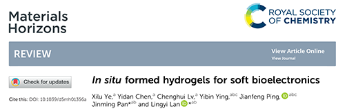 近日,浙江大學IBE團隊藍玲怡研究員,在Materials Horizons (RSC)上發表了一篇題為 “In situ formed hydrogels for soft bioelectronics” 的綜述文章,系統梳理了原位成型水凝膠在柔性生物電子學領域的最新進展,重點聚焦于水凝膠形成的機理、關鍵應用方式、功能,以及在柔性生物電子系統中的新興應用。此外,文章還對未來發展進行了展望,強調原位水凝膠在推動該領域創新與性能提升方面所具有的變革性潛力。