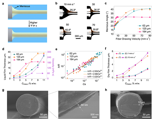 圖3. 纖維表面液膜與聚合物涂層的厚度調控。