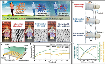 圖1. 面向全氣候自適應熱濕管理的雙響應智能熱濕調節紡織品的設計概念與先進性