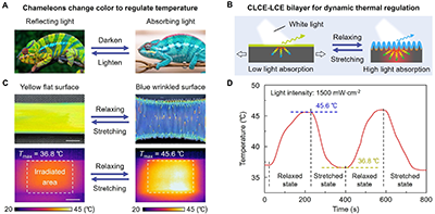 圖4. 雙層CLCE-LCE作為智能皮膚用于動態熱調節