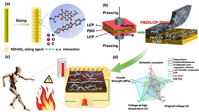 針對這一挑戰,東華大學朱美芳院士、游正偉教授、管清寶教授研究團隊和高技術有機纖維及復合材料四川省重點實驗室陳超峰博士合作開展界面分子工程設計,成功研發出一種兼具高耐溫性與力學強度的復合材料——聚對苯撐苯并噁唑(PBO)纖維增強液晶聚芳酯(LCP)復合材料。