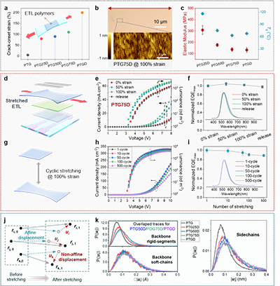 圖1:實現可拉伸OLED的高效電子注入的設計策略。