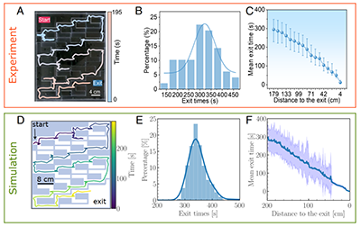 圖3 液滴馬達解決迷宮問題的實驗與模擬結果對比