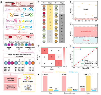 為進一步提升臨床適用性,團隊將邏輯門運算與顏色信號分析相結合,構建了三級判別體系:通過藍色信號的G/B比值、粉紅色信號的R/G比值及復合顏色的R/G比值,分別設定診斷閾值,實現對健康人群、早期TBM患者與病情惡化患者的精準區分。