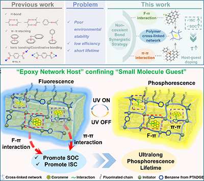 2026年2月4日,該工作以“Epoxy Network Hosts Confine Small Molecule Guests for Enhancing Phosphorescence Through F-π and π-π Synergistic Interactions”為題發表在《Advanced Functional Materials》上。文章第一作者是天津大學材料學院碩士研究生徐新月,通訊作者為天津大學材料學院朱艷吉老師。