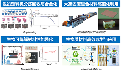面向國家綠色低碳循環(huán)發(fā)展經(jīng)濟(jì)體系建設(shè),聚焦退役塑料回收處理、大宗固廢資源化利用、生物可降解材料高性能化與生物質(zhì)材料高效成型等關(guān)鍵問題,開展材料的可持續(xù)發(fā)展與高值化利用技術(shù)研究:
