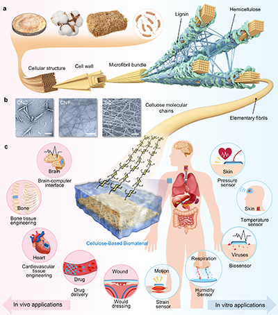 在精準(zhǔn)醫(yī)療快速發(fā)展的背景下,如何實(shí)現(xiàn)從體外篩查、體表監(jiān)測(cè)到體內(nèi)干預(yù)的多維健康數(shù)據(jù)獲取與整合,已成為新一代生物醫(yī)用材料與智能醫(yī)療器件領(lǐng)域的重要前沿問(wèn)題。纖維素作為自然界中最豐富的天然高分子之一,兼具生物相容性、可降解性、親水性、結(jié)構(gòu)可設(shè)計(jì)性和多尺度組裝能力,正逐步從傳統(tǒng)生物材料拓展為面向精準(zhǔn)醫(yī)療的關(guān)鍵平臺(tái)材料。