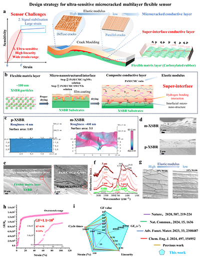 圖2基于“3D超界面”的MSFS導電層“脆-韌”調控機制及裂紋結構調控策略。