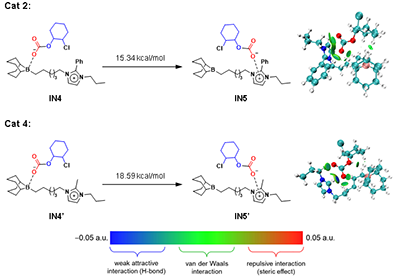 圖5. 催化劑2和4關鍵中間體鏈轉移的吉布斯自由能