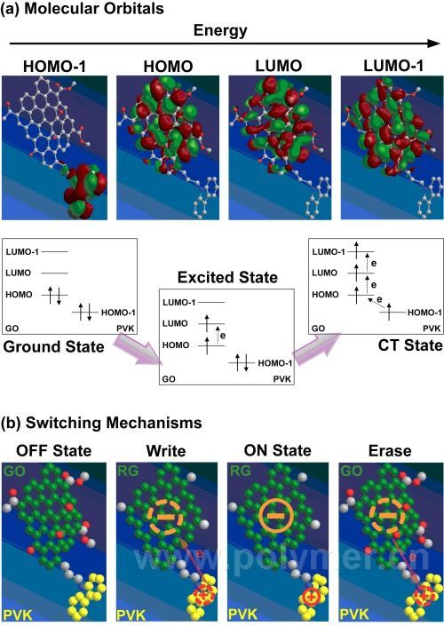 圖片說明:GO-PVK分子軌道模擬及開關機理
