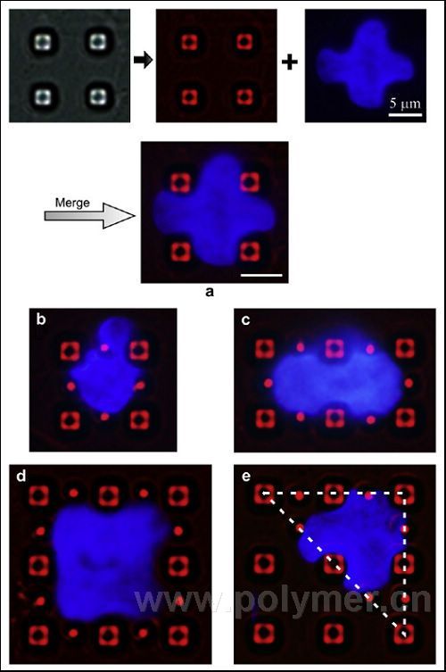 隨后還設(shè)計了不同的陣列圖案,實現(xiàn)了對于不同細(xì)胞核形狀的設(shè)計,甚至可以得到十字交叉、具有小凸起的球、啞鈴形、方形等特殊形狀。論文在生物材料領(lǐng)域權(quán)威刊物Biomaterials (SCI Impact factor: 7.882)發(fā)表。