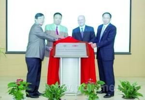 由陶氏化學(中國)投資有限公司與復旦大學共同創建的聯合材料研究中心揭牌儀式,近日在復旦大學江灣校區舉行。未來雙方將在這個全新的平臺上,依托復旦先進材料實驗室,共享科研資源,開展聯合研究和人才培養等合作。 圖為陶氏—復旦聯合材料研究中心揭幕。