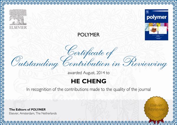Be the Outstanding Reviewer of the jounal of Polymer in 2014