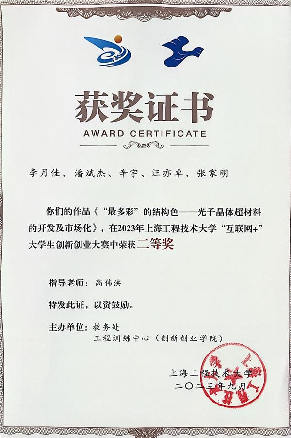 2023年上海工程技術大學“互聯網+”大學生創新創業大賽二等獎