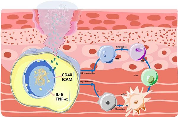 Abstract: In this study, a dual-network, dynamically cross-linked composite hydrogel was developed for wound closure and healing. The combined action of dopamine iron coordination reaction and Schiff base linkage between dopamine-modified oxidized hyaluronic acid (OHA) and polyacrylamide (PAM) was employed to form a dual-network, dynamically cross-linked structure in hydrogel. Then viscid germander herb (Vgb) extracted from total saponins was incorporated into the composite hydrogel to fabricate hydrogel wound dressing. The resultant hydrogel wound dressing demonstrated good biocompatibility in accelerating cell proliferation and migration. In vivo results demonstrated that compared with commercial dressings, the resultant hydrogel wound dressing facilitated wound healing on an infected full-thickness skin defect model by upregulating the gene expression of growth factors such as CD-31 and downregulating that of inflammatory factor IL-6. The transcriptomic results revealed that the biological mechanism by which Vgb regulated NF-κB and the innate immune system signaling pathways in the wound closure and healing processes.