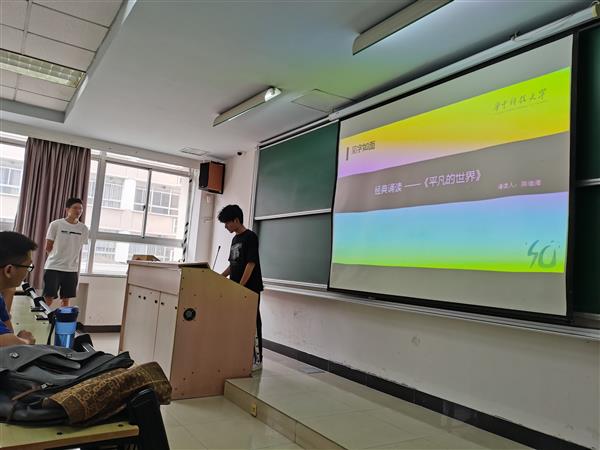 經典誦讀環節中,陳迪海同學帶來《平凡的世界》片段朗誦,做經典誦讀人,經典推介人。分享感悟,同時抒發自身對大學生活的美好愿景。