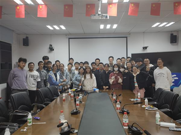 接著,我們進行了擊鼓傳花游戲,并有前后四名幸運同學獲得了表演節目的機會,最后,我們29名同學和教師班主任龔江老師、學生班主任史一樂學長、陳志聰學長合影留念。至此,此次班會進入尾聲。