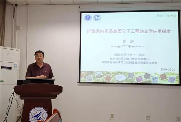 2019年5月29日上午9:30,應理學院應用化學系主任顧軍渭教授邀請,西南大學黃進教授訪問我院,并在理學院383會議室做了題為“纖維素納米晶表面分子工程的光學應用探索”的報告。報告會由史學濤副教授(化學系系副主任)主持。來自理學院應用化學系及柔性電子研究院的教師、研究生及本科生參加了本次學術報告會。