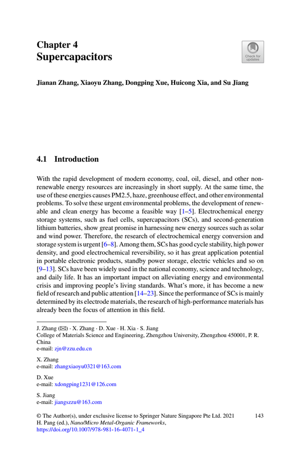 Metal–organic framework,MOF-derived materials,Supercapacitor