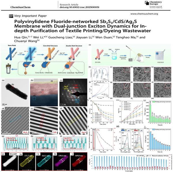 Polyvinylidene fluoride-networked Sb2S3/CdS/Ag2S membrane with dual-junction exciton dynamics for in-depth purification of textile printing/dyeing wastewater