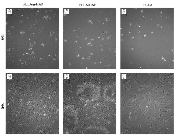 Human condrocytes /rabbit osteoblasts grew on the surfaces of g-HAP/PLGA nanocomposites (Biomaterials, 2005,26, 6296-304; Acta Biomaterialia 2009;5:2680-9)