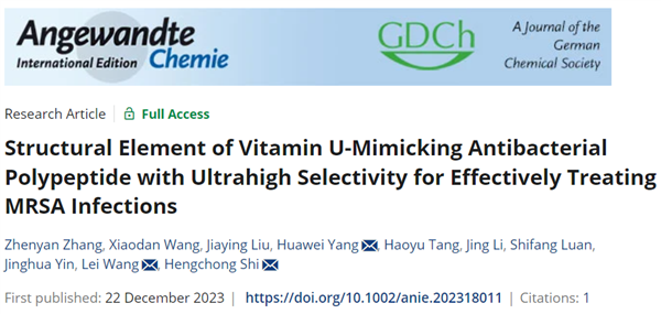 【Angew Chem Int Ed】Structural Element of Vitamin U-Mimicking Antibacterial Polypeptide with Ultrahigh Selectivity for Effectively Treating MRSA Infections