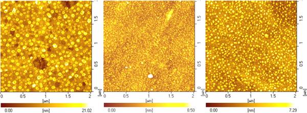 Aggregation behavior of an amphiphilic diblock polyelectrolyte poly(n-butylacrylate)-b-poly(acrylic acid) (PnBA-b-PAA) at the air/water interface and morphologies of its LB films were characterized by the Langmuir monolayer technique and atomic force microscopy (AFM), respectively. Effects of subphase pH, temperature and ionic strength on the isotherms and hysteresis curves of the PnBA-b-PAA monolayers and the morphologies of its LB films were systematically studied. With the increase of subphase pH, the isotherms shift negatively and the quasi-plateaus disappear under neutral and alkaline conditions. Hysteresis phenomena of the PnBA-b-PAA monolayers on acidic and neutral subphases are quite obvious and similar, while the compression and expansion isotherms under alkaline condition are almost overlapped. The LB films of PnBA-b-PAA transferred from acidic subphase exhibit isolated circular micelles with large size, while those from alkaline subphase exhibit condensed ones with small size. With the rise in subphase temperature, PnBA blocks on the water surface are more likely to aggregate into large cores due to the higher molecular mobility. Furthermore, the totally ringlike nanostructures prepared from alkaline subphase with medium ionic strength are observed for the first time in LB films of block copolymers.