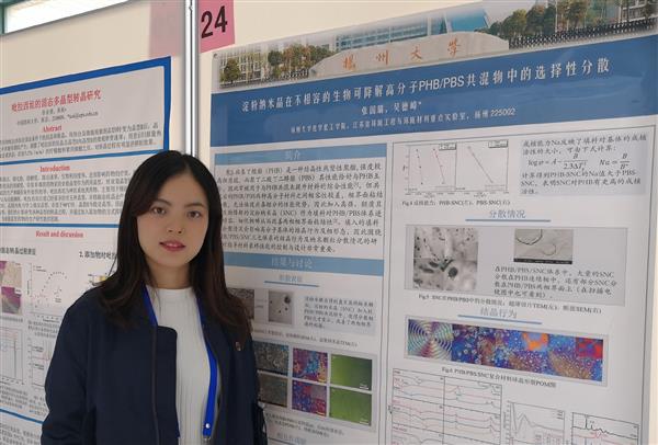 課題組張國瑞同學(xué)做題為“結(jié)晶溫度為探針——探究淀粉納米晶在不相容生物可降解高分子共混體系中選擇性分布”的墻報展講~