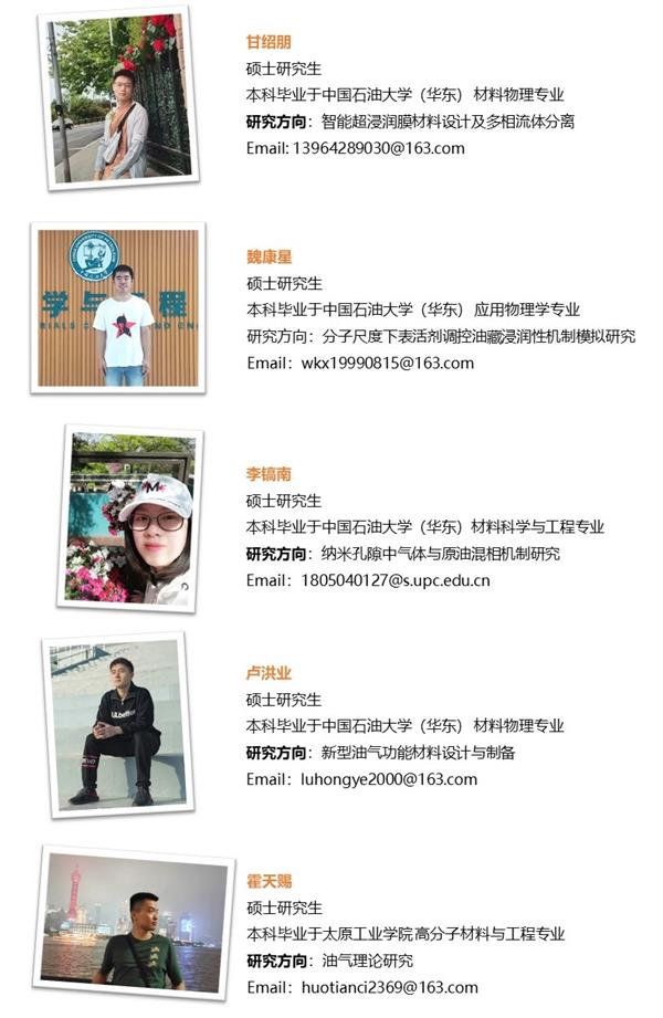 碩士研究生:王冉、劉錫魯、閻澤琛、甘紹朋、魏康星、李鎬南、盧洪業、霍天賜