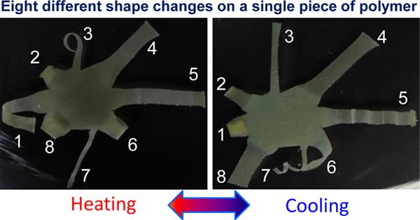 An easily processable liquid crystal polymer can be optically “programmed” to display multiple shape morphing on a single piece of specimen.