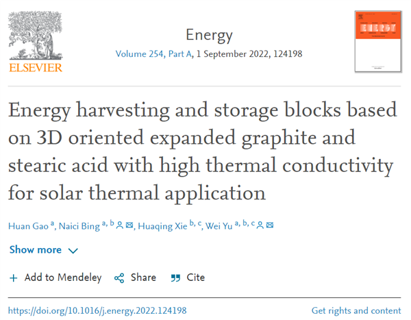 Energy:基于三維定向膨脹石墨和高導熱硬脂酸的太陽能熱利用的能量收集和存儲塊