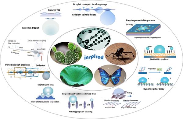 - Exploring the mechanism and throyies of biological surfaces to control the unique wettability, studying and designing and fabricating the functional bioinspired interface materials.