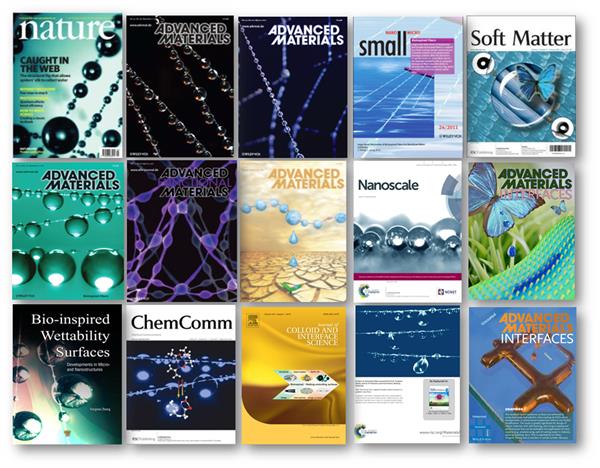 綜上所述,開展了系統創新性研究工作。在國際頂級的高影響力期刊發表論文:Nature;Adv. Mater.;Adv. Funct. Mater.;Small;Chem. Commun.;Langmuir,Soft Matter, Appl. Phys. Lett.等,封面\內封面\背封面\內插頁突出報道等8篇。研究論文得到了自然期刊、皇家化學學會及專家們在仿生結構材料制備以及浸潤功能性研究上給予了肯定。論文被國際期刊如Nature、Nat. Mater.、Nat. Commun.、Science等引用。上述研究成果將給新型功能材料設計提供參考。