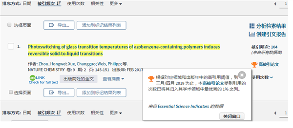 根據對應領域和出版年中的高引用閾值,到 三月/四月 2019 為止,本高被引論文受到引用的次數已將其歸入其學術領域中最優秀的 1% 之列。